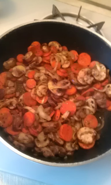 Barley, white beans, carrots, onions, kale, spinach, and mushrooms. MMM!